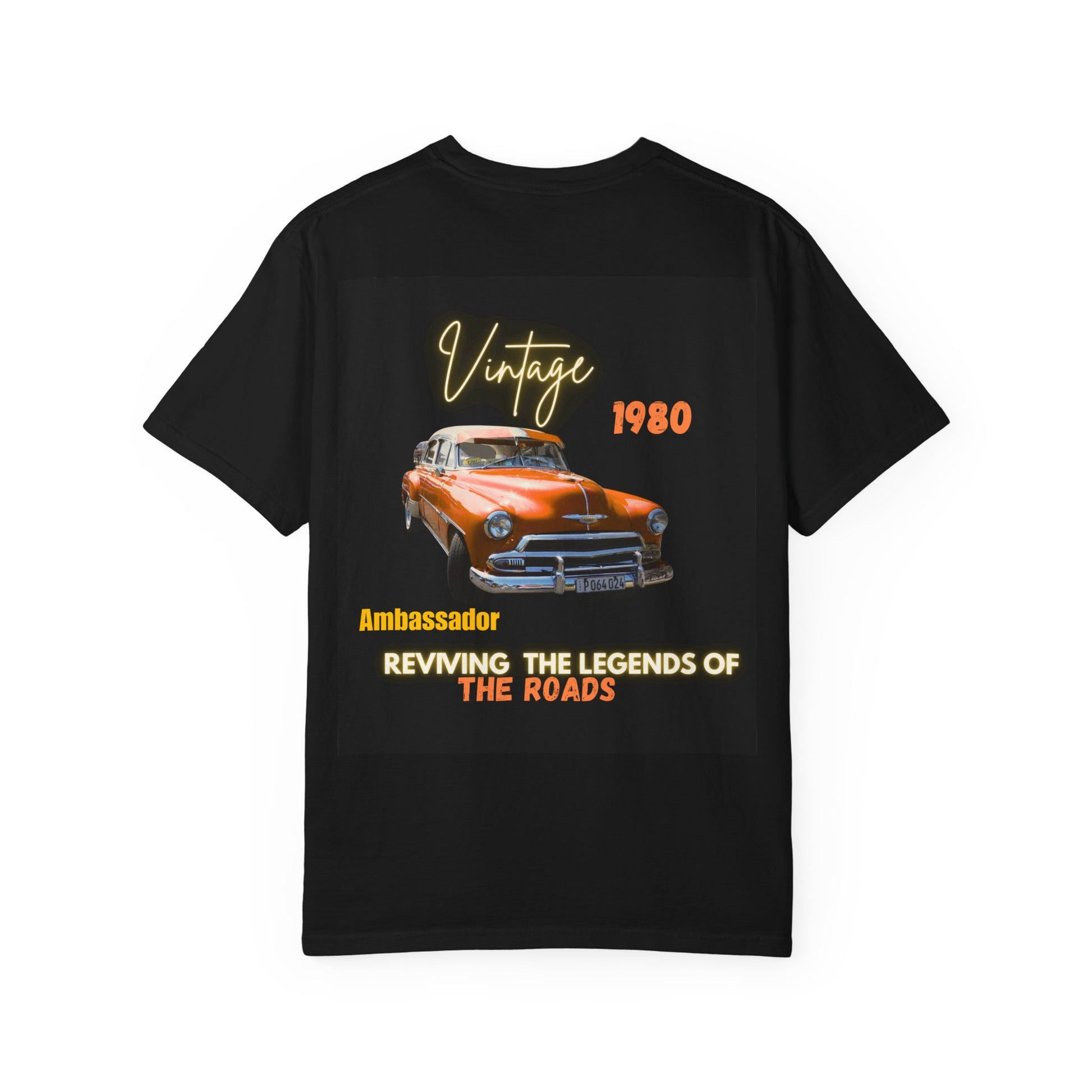 Step into timeless style with the Vintage Ambassador 1980 Tee, designed for those who respect classics and live for the road. Featuring a bold retro car graphic on the back with glowing vintage typography, this tee revives the golden era of automobiles with a modern streetwear touch.