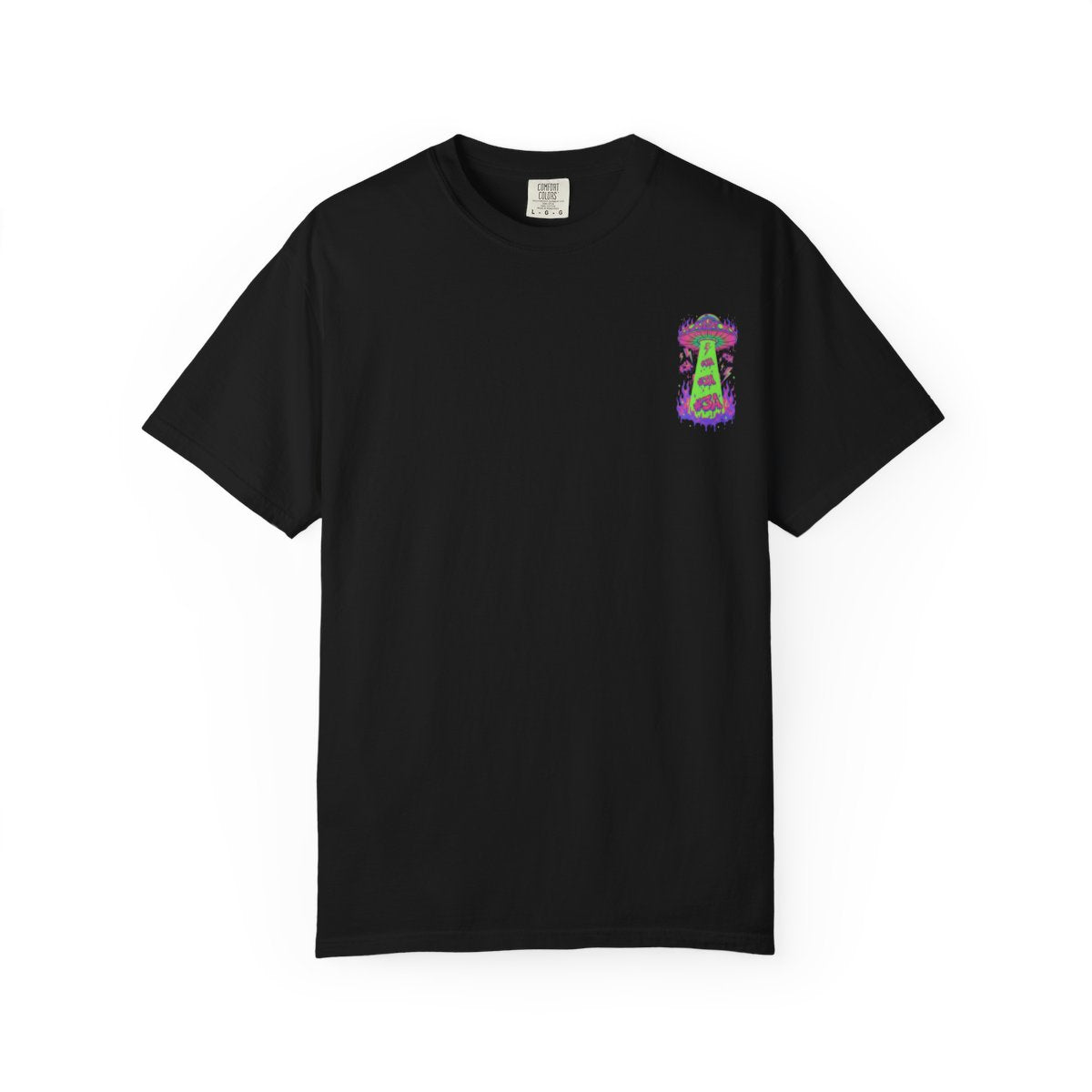 🛸 Statement Back Print – UFO beam graphic with neon, drip-style detailing